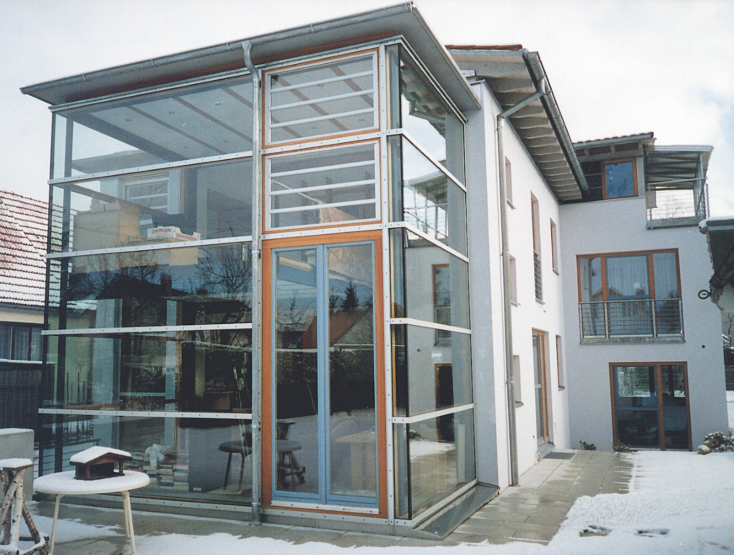 Einbau Spezialfenster als Kastenfenster, außen Stahlflügel nach außen öffnend, und innen Holzfenster